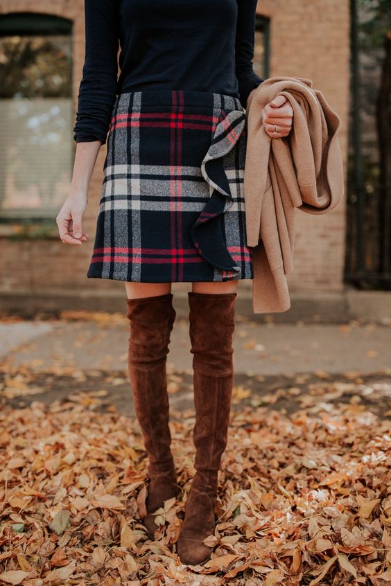 Plaid is definitely back in style. I used to wear plaid a lot when I was a kid and have since tried to incorporate it into my wardrobe with bits and pieces, like a subtle scarf here and there, but now I feel like I can really dive in. I love the look of a plaid skirt. And no, I don’t mean like an old Britney Spears music video, but rather something a little longer, classier, and paired with a chunky sweater and boots.